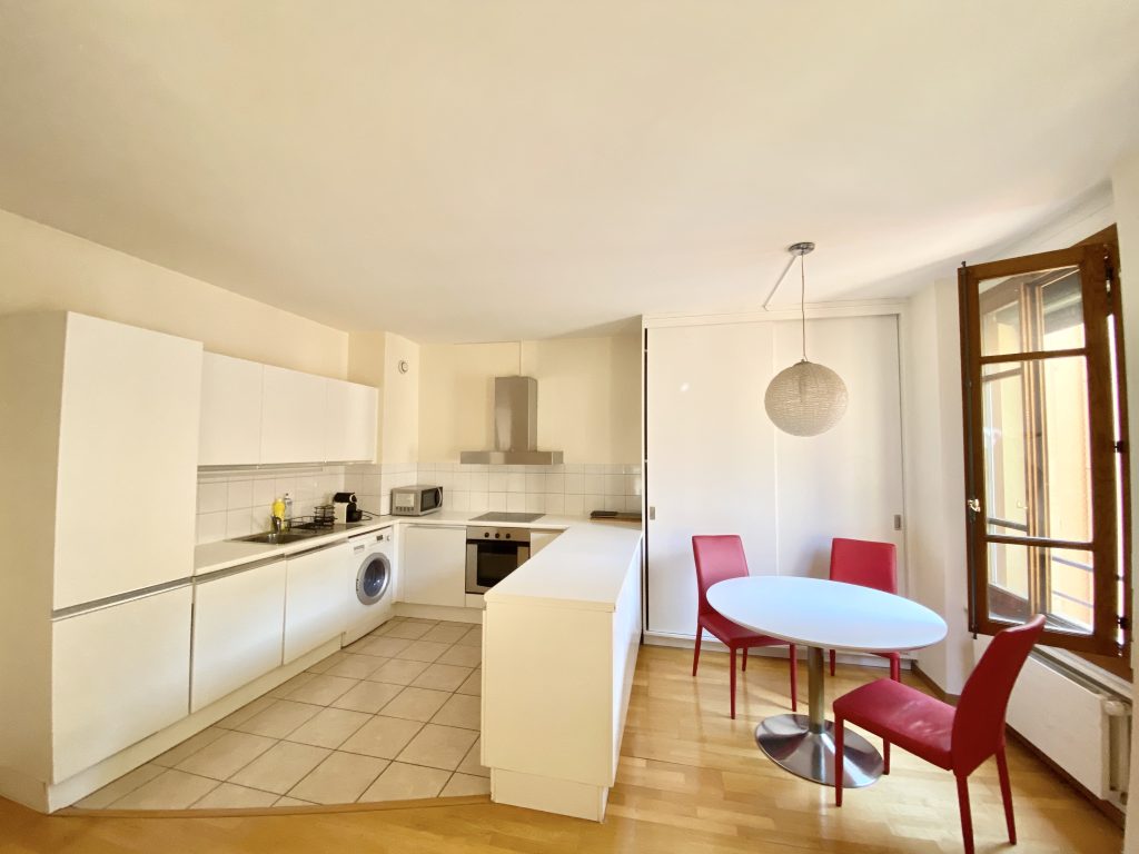 Beautiful charming fully furnished apartment of 53 m2, bright and quiet. The apartment is located in the dynamic Plainpalais district. It benefits from an excellent location, close to all amenities (tram, cycle path) and all shops (schools, restaurants, city center, close to the university).